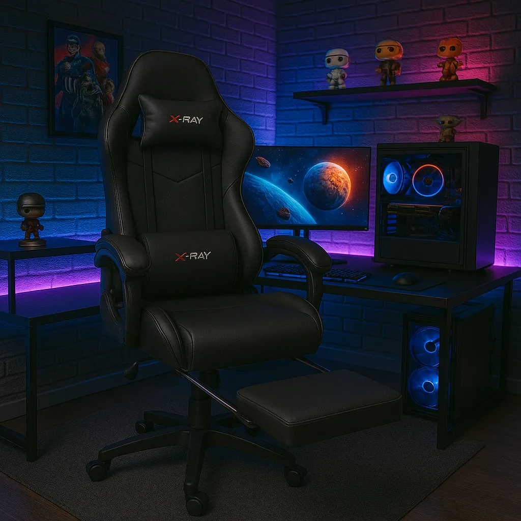 Esteja sempre um passo à frente de seu oponente sentando-se confortavelmente por horas em sua Cadeira  Cadeira Gamer X-Ray Branca e Preta. Sua Cadeira Gamer X-Ry é altamente funcional possui ajuste de altura do assento, tensão de inclinação, travamento de inclinação, braços ajustáveis e um assento reclinável. afio. É o que a Cadeira Gamer X-Ray vai te proporcionar