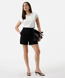 Bermuda de alfaiataria feminina com linho preta