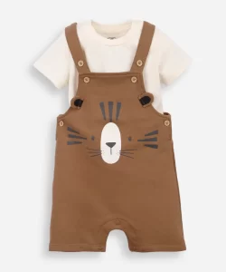 Jardineira infantil de moletom sem felpa estampada marrom 0-3 (0)