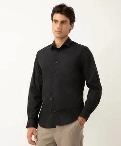Camisa slim fit de algodão manga longa preta