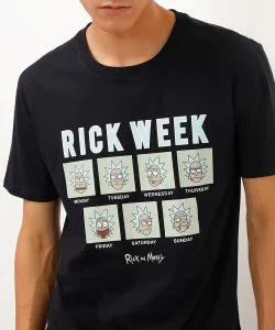 camiseta de algodão rick and morty manga curta preto