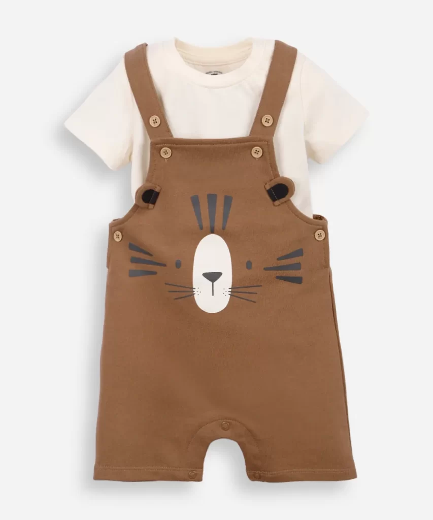 • Jardineira confeccionada em moletom sem felpa 100% algodão, com uma divertida estampa frontal de bichinho.